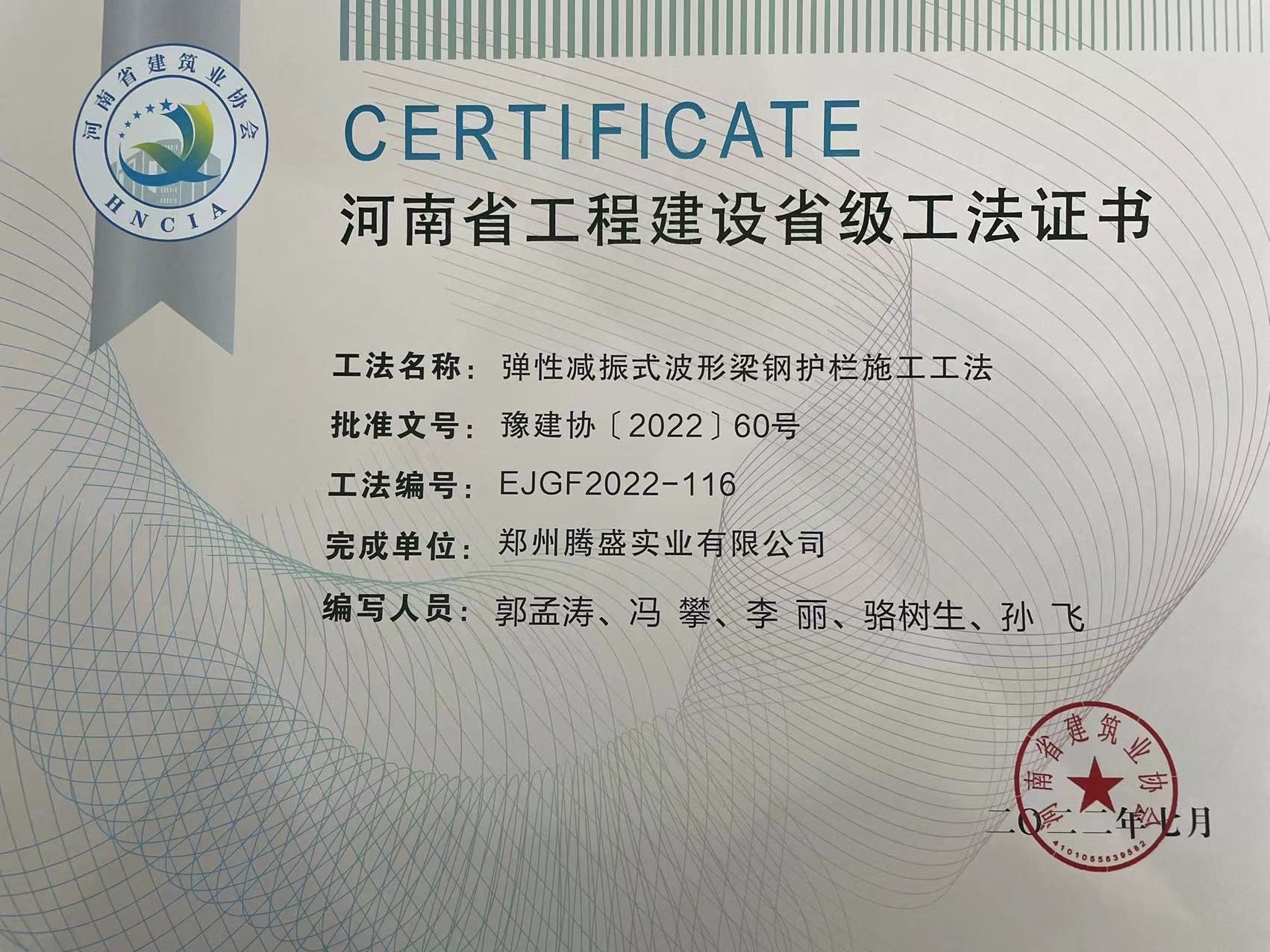 近日,我公司關(guān)于“彈性減震式波形梁鋼護欄施工工法”順利通過河南省建筑業(yè)協(xié)會批準(zhǔn),取得相應(yīng)省級工法證書,該工藝的順利批準(zhǔn),標(biāo)志著我公司在波形梁鋼...