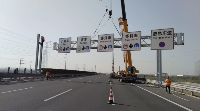 近日,由騰盛公司負(fù)責(zé)的G107東移與連霍高速相交高速段順利完成門架式標(biāo)志牌的安裝。