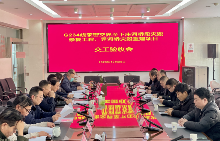 12月28日下午,鄭州市公路事業(yè)發(fā)展中心對(duì)路通公司承建的G234線滎密交界至下莊河橋段災(zāi)毀修復(fù)工程、界河橋?yàn)?zāi)毀重建項(xiàng)目進(jìn)行交工驗(yàn)收。項(xiàng)目建設(shè)、設(shè)計(jì)、施工等相關(guān)單位代表參加會(huì)議。驗(yàn)收會(huì)上,中心領(lǐng)導(dǎo)對(duì)我公司的專業(yè)能力、社會(huì)責(zé)任和企業(yè)精神給予了高度評(píng)價(jià),經(jīng)過(guò)評(píng)審小組的嚴(yán)格檢查和評(píng)估,一致認(rèn)為項(xiàng)目達(dá)到設(shè)計(jì)要求和質(zhì)量標(biāo)準(zhǔn),工程質(zhì)量合格,符合交工驗(yàn)收條件。
