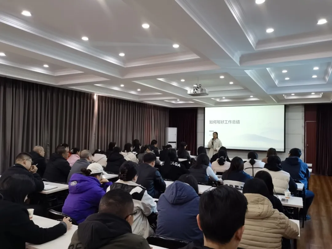 為更好梳理和總結(jié)年度工作,11月20日下午,機(jī)關(guān)綜合辦副主任郭芳娜以“如何寫好工作總結(jié)”為主題開展“公文寫作系列培訓(xùn)”第九期培訓(xùn)課程。路通公司副總經(jīng)理周麗娟出席活動(dòng)現(xiàn)場,各部室、各單位職員40余人參加,綜合辦主任宋艷麗主持本次培訓(xùn)。