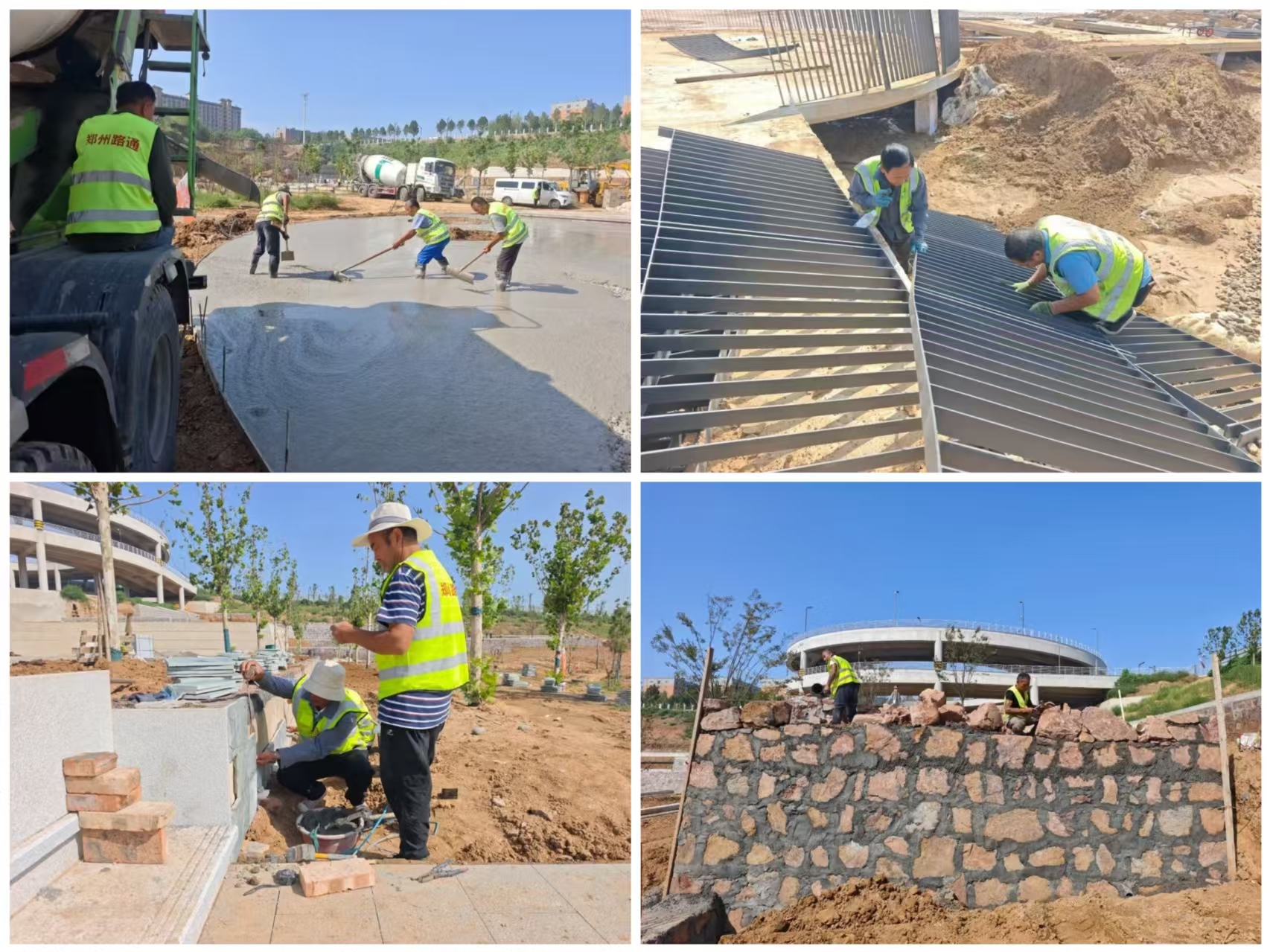 截至目前,項(xiàng)目多項(xiàng)工程節(jié)點(diǎn)已取得顯著進(jìn)展:綠化微地形塑造、三大景觀節(jié)點(diǎn)的基礎(chǔ)鋪裝與結(jié)構(gòu)施工、人工湖區(qū)域的回填及防水工程、湖周景石與鵝卵石鋪設(shè)、環(huán)湖道路混凝土基層澆筑等已全部完成;操場(chǎng)西南側(cè)及北側(cè)毛石擋土墻完成進(jìn)度已達(dá)90%;綠植移栽完成70%;非機(jī)動(dòng)車停車場(chǎng)混凝土澆筑已完成3處。